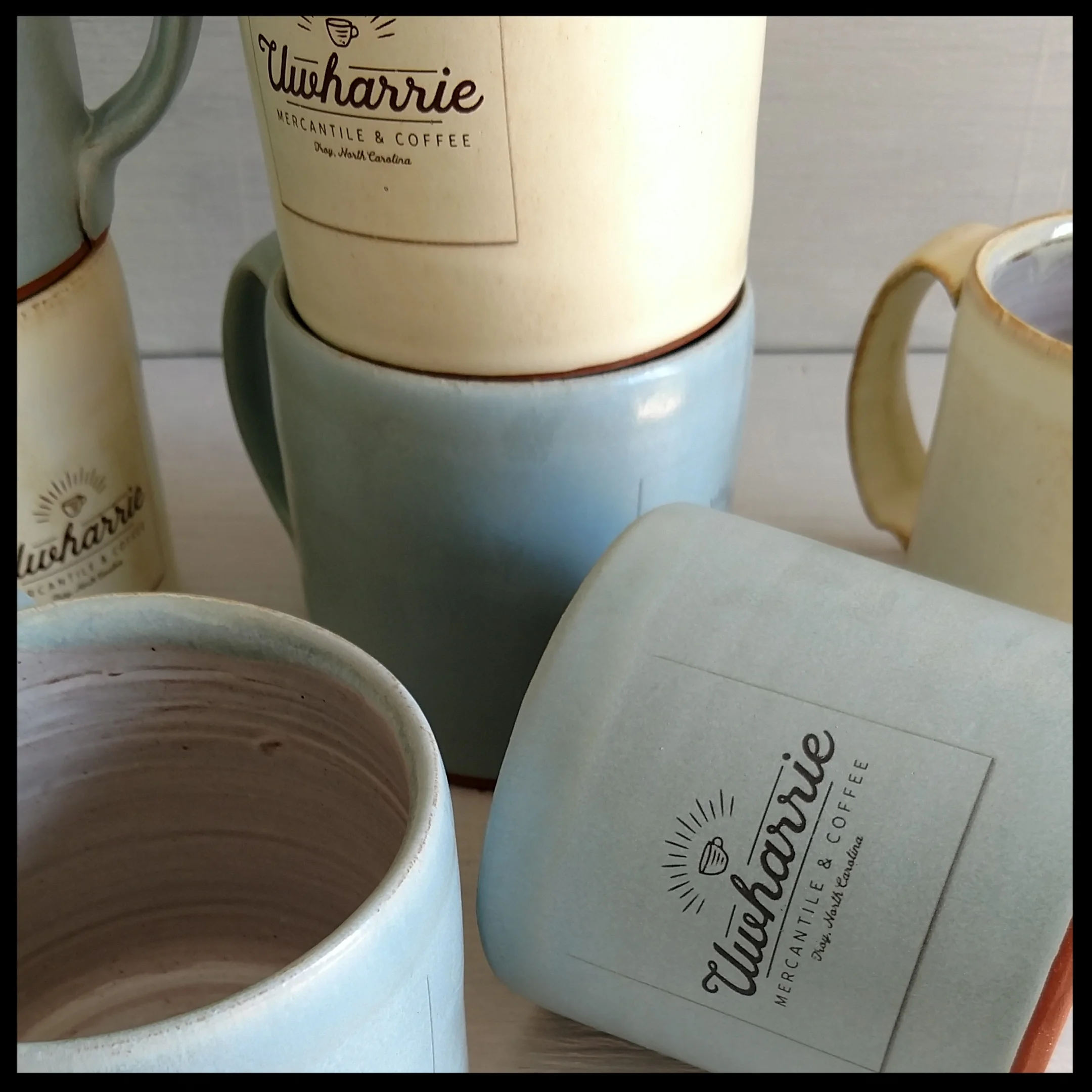 These are images of custom mugs I’ve made for the Uwharrie Mercantile in downtown Troy, NC, and some other local businesses.